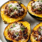 This comforting and flavorful Sausage Stuffed Acorn Squash recipe combines tender roasted acorn squash halves filled with a savory Italian sausage mixture enhanced with fresh thyme, garlic, and parmesan cheese. It’s a cozy autumn dish perfect for a satisfying dinner that’s both hearty and packed with delicious seasoning.
