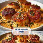 This recipe features perfectly seared large sea scallops served in a rich and flavorful Cajun cream sauce. The sauce is made from sautéed bell peppers and onions, spiced with Cajun seasoning, smoked paprika, and cayenne pepper, then simmered with white wine, heavy cream, and chicken broth to create a creamy, slightly spicy accompaniment. The seared scallops are tender and caramelized, making this dish both elegant and easy to prepare, perfect for serving over pasta, rice, or with crusty bread.