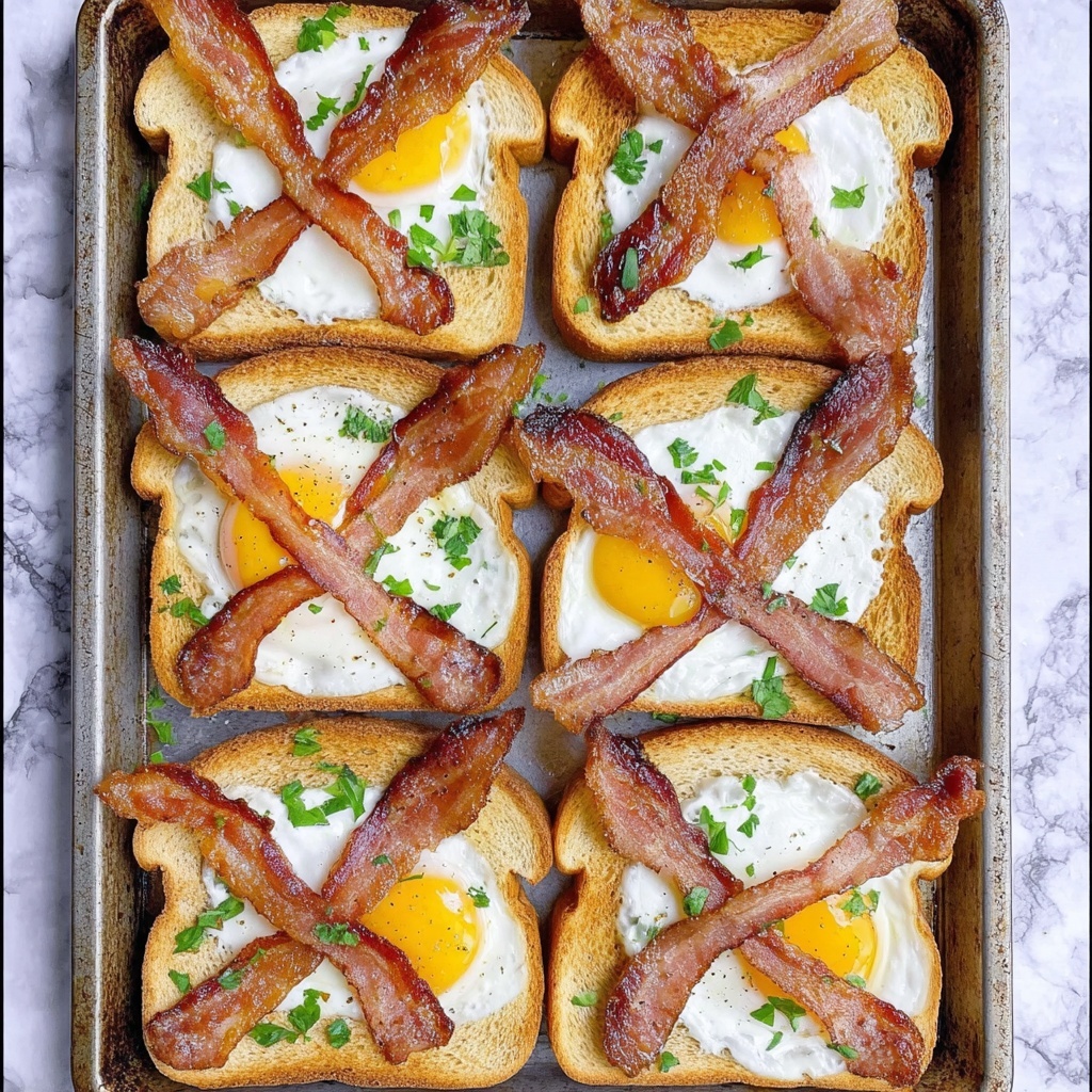 Sheet Pan Egg in a Hole is a delightful twist on the classic breakfast favorite, combining crispy bacon, buttery toasted bread with a hollow center, and baked eggs topped with savory parmesan cheese. This easy-to-make recipe bakes everything together on one sheet pan, making it perfect for a hassle-free, crowd-pleasing breakfast or brunch.