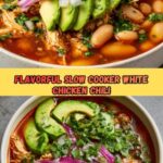 This Slow Cooker White Chicken Chili is a creamy, comforting dish perfect for easy weeknight dinners. Packed with tender chicken, white beans, corn, and mild green chilies, it’s seasoned with cumin and oregano for a flavorful, hearty meal. The slow cooker method allows the flavors to meld beautifully while making preparation simple and hands-off. Finished with cream cheese, sour cream, lime juice, and optional garnishes, this chili is both rich and vibrant, ideal for a satisfying main course.