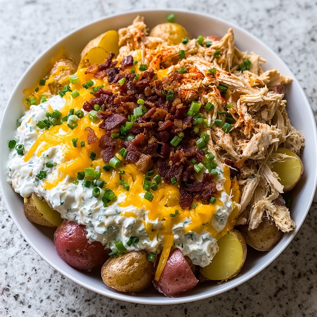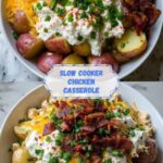 A comforting and hearty Slow Cooker Loaded Chicken and Potato Casserole featuring tender chicken, seasoned red potatoes, crispy bacon, and a blend of cheddar and mozzarella cheeses. This easy, one-pot dish is perfect for busy days and delivers rich, savory flavors with minimal prep and slow-cooked perfection.