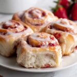 These cinnamon rolls shine with a cup of freshly brewed coffee or a creamy latte. For a fuller breakfast spread, pair them with scrambled eggs or a fresh fruit salad — the bright flavors complement the rolls’ sweet and tangy strawberry filling exceptionally well.