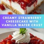 This Strawberry Shortcake Cheesecake combines a luscious vanilla wafer and freeze-dried strawberry crust with a creamy cheesecake filling studded with fresh strawberries, topped with a sweet homemade strawberry compote. Baked to perfection and chilled overnight, it is a delightful dessert that balances rich creaminess with fresh fruity flavors.