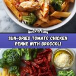 A creamy and flavorful Sun-Dried Tomato and Chicken Penne pasta dish featuring tender chicken breasts, vibrant broccoli florets, and a rich Parmesan cream sauce, perfect for a satisfying family meal.