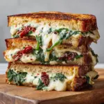 This Sun-Dried Tomato, Spinach, and Ricotta Grilled Cheese Recipe is a delicious and gourmet twist on the classic grilled cheese sandwich. It features a creamy ricotta and mozzarella cheese blend mixed with sun-dried tomatoes and fresh spinach, sandwiched between slices of sourdough or Italian bread, then grilled to golden perfection. Perfect for a comforting lunch or light dinner, this sandwich combines Italian-inspired flavors with the comforting warmth of a traditional grilled cheese.