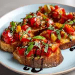 This Tomato Bruschetta Recipe is a shining example of how a few simple ingredients, when treated with care, can create something truly delightful. It’s fresh, flavorful, and incredibly easy to make, so why not give it a try soon? Whether for a quick snack or an impressive starter at your next gathering, this recipe is sure to become a new favorite you’ll keep coming back to.