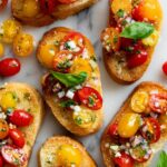 Try serving the tomato mixture in a beautiful bowl alongside toasted bread slices for a casual, serve-yourself style. Or, arrange each bruschetta on a rustic wooden board, adding edible flowers or microgreens for a stunning party presentation. The vibrant colors alone make this dish a crowd-pleaser.