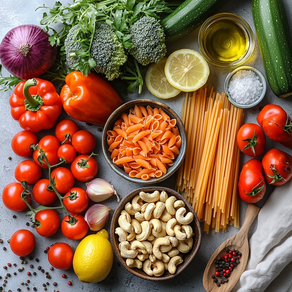 This recipe is wonderfully straightforward, relying on a handful of wholesome staples that bring color, crunch, and creaminess to the table. Each ingredient plays a vital role, whether it’s the raw cashews creating that indulgent sauce or the vibrant array of vegetables delivering freshness and nutrients.