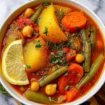This hearty vegan stew is loaded with a colorful medley of fresh vegetables and chickpeas, simmered in a flavorful blend of herbs and spices. Perfect for a nutritious and comforting meal, it combines the earthiness of potatoes and green beans with the brightness of lemon juice and fresh parsley for a well-rounded dish that’s both satisfying and wholesome.