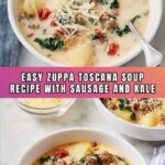 A hearty and comforting Zuppa Toscana soup featuring Italian sausage, crispy bacon, tender potatoes, and fresh kale in a creamy chicken broth base. Perfect for a cozy meal that blends rich flavors and a satisfying texture.